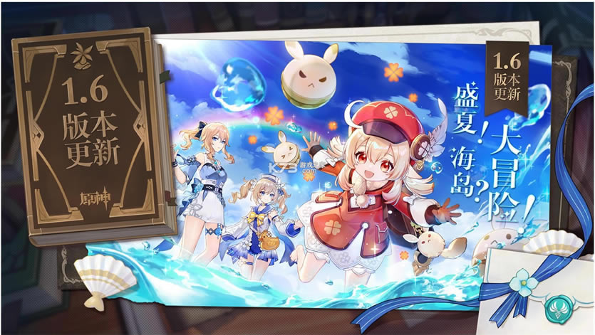 原神V1.6版本「盛夏!海岛?大冒险!」已更新上线,现已开服,可完成更新并加载资源后进入体验新版本内容。