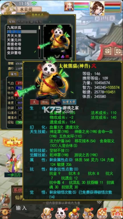 【八卦通神】全新仙灵养成玩法“八卦通神”,消耗通神玉等材料可将紫金仙灵提升为赤金仙灵,大幅提高仙灵属性!