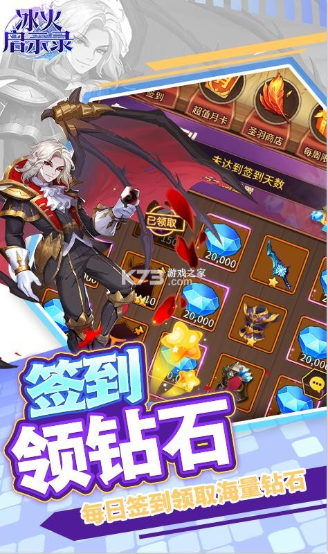《冰火启示录》是精心打磨的唯美国风的仙侠rpg游戏,力求为你呈现精美细腻、多姿多彩的仙魔世界。开局就送VIP9,千元充值礼包,100级直升丹,七日登入更有诸多绝版外显倾囊相赠,VIP福利不仅能免费领取各类珍稀道具,更可激活众多特权天书。独创欧皇砸蛋功能,每日活跃共可砸蛋100次,砸出648充值,砸出专属套装。世界将倾,谁主沉浮?苍穹之上,谁为主宰?处于位面交汇处的大荒世界,等你演绎传颂万世的精彩传奇