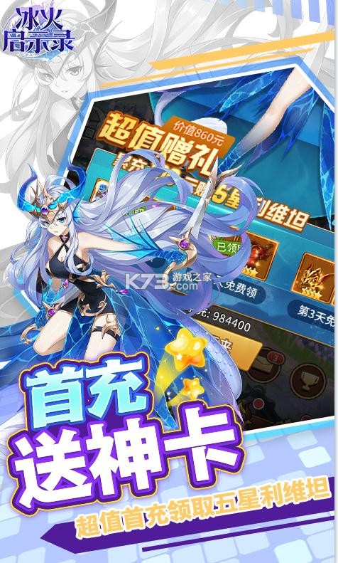 《冰火启示录-超强福利》是一款非常有意思的角色扮演手游,游戏中的每一个角色的颜值都特别的高,拥有华丽的游戏特效,还有超多神级装备等你来收集。丰富的副本等你来挑战,每一个副本的难度都不一样,还可以和其他的玩家在竞技场上一较高下,不断刷新自己的最好排名,玩法有趣,喜欢的小伙伴千万不要错过了!