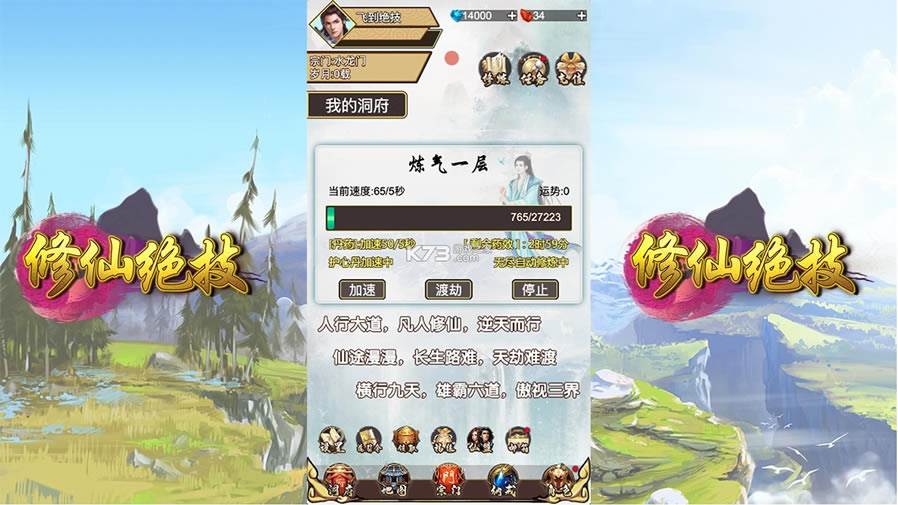游戏采用了养成、放置、修仙、文字等诸多元素,为玩家带来一款并不纯粹的修仙游戏,享受更多风格的游戏玩法,感受不一样的游戏魅力。
