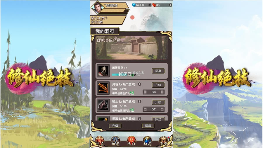 玩家的洞府系统可以收集各式各样的神兵法宝,还能雇佣奴仆帮助获取高额的资产收益,其中不少淬体液的材料也是在这里产出的,为了保证修炼速度还请玩家终点升级这边的系统,且保证灵仆的工作效率。