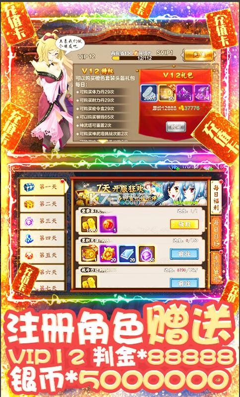 ★注册角色赠送:VIP12、判金*88888、银币*500W