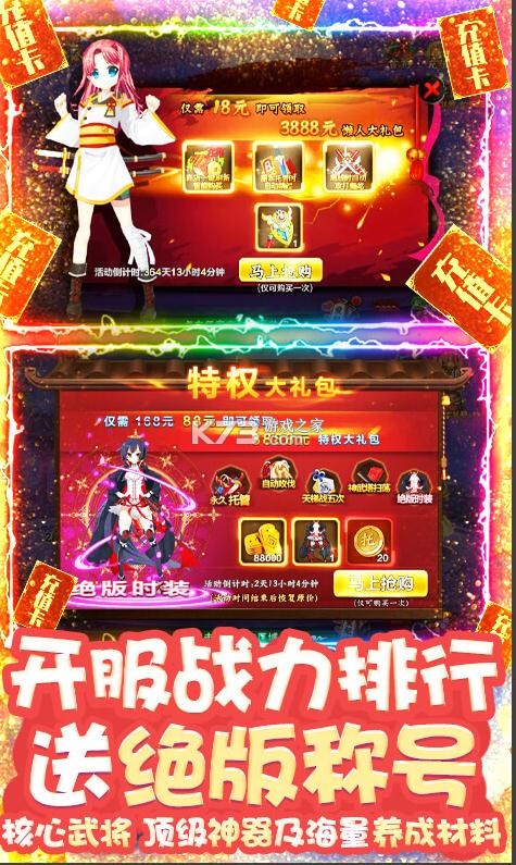 ★开服战力排行送绝版称号、核心武将、顶级神器及海量养成材料