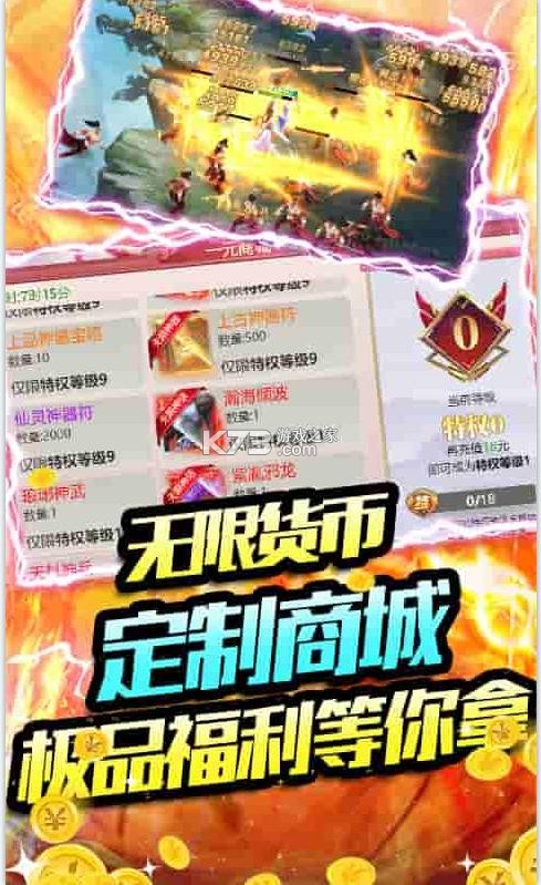 6、定制无限商城,解锁特权,从宠物到坐骑再到灵武、神器,全线养成保毕业,顶级幻化等你拿!