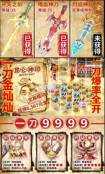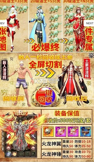 挂机解放爽手,更加轻松快速升级,装备还可以在线回收;