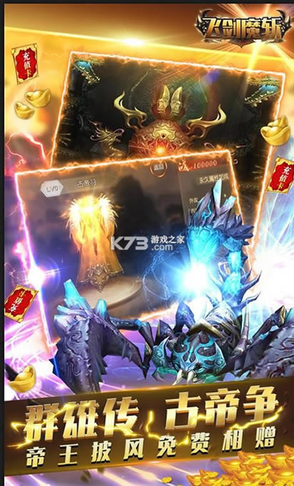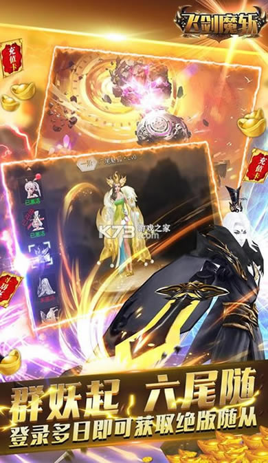 《飞剑魔斩》每天送超值充值卡和满v,进入仙侠的世界中和好友一起作战,让玩家们感受极致的视觉盛宴,自由的挑战赛,探索未知的江湖世界,寻找宝藏,领略不同的风貌,每天登录快速的领取,返利高,珍稀道具爽到爆。
