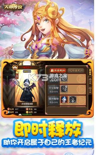 《天命传说》五星神装召唤更多的神将,开启诸神的战斗,六大种类的英雄齐聚,体验不同的pk战斗,自由搭配华丽的震动特效,体验不一样的pk战斗,开启自己的王者纪元,超多熟悉的神话英雄,搭配法术尽情的畅玩。