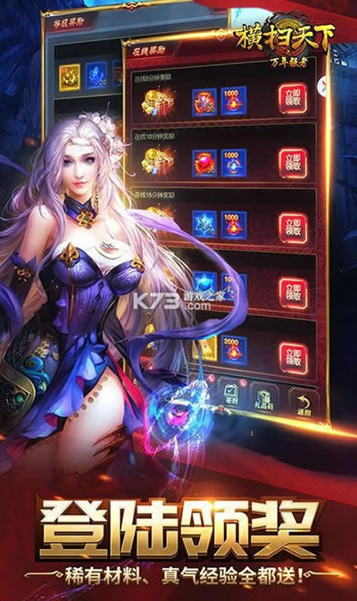 《横扫天下之万年强者》充值就返元宝,福利多送普通vip满级和超级svip3,登录免费送20级的vip,炫酷的游戏技能,登录就领,在这里刻画了唯美的武侠世界,控制多个角色带来不同的战斗体验,让战斗拥有无穷的变化。