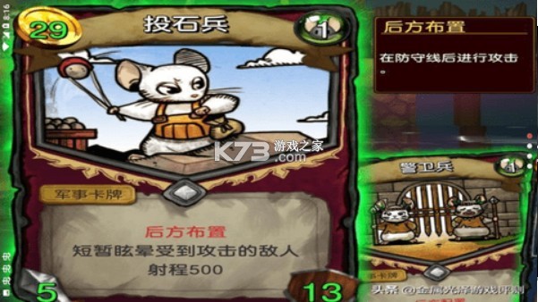 《鼠之城邦2》是一款卡牌对战的冒险游戏,玩家可于游戏内不断收集卡牌组合,通过对决闯关的方式,来获取更多金币抽取卡牌,不同的卡牌组合运用于不同的关卡,灵活组合卡牌才是王道。
