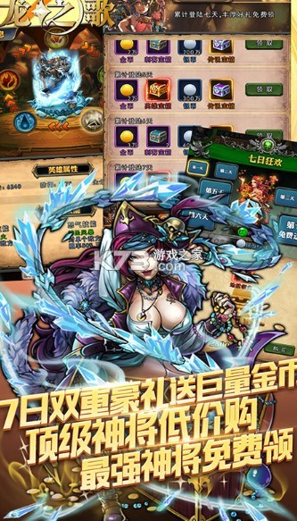 新增签到送充值卡,每日签到每日送,七日登录送6星英雄,海量金币,稀有道具咒石,商店价格大幅度降低,道具奖励大幅度提升。