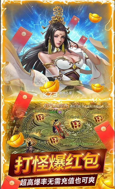 2.上线送GM大礼包,可领取VIP30,完成创角即可获得元宝*288888+绑定元宝*666666+银两*188888