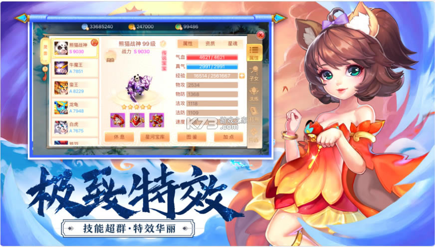 西游异兽录多种角色供玩家选择,不同角色其特点、技能皆不同,玩家可以体验到不同的战斗快感