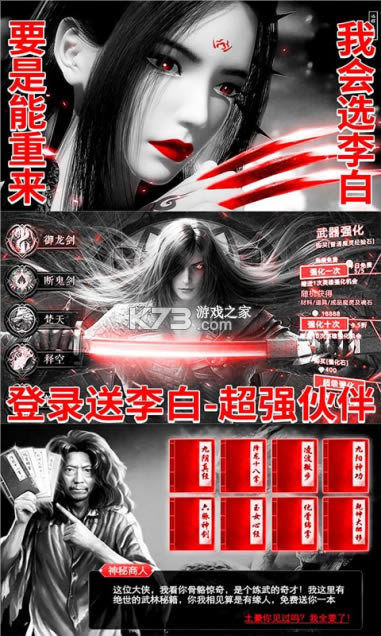 多种职业自由切换:九天玄珠随意转换,全职业角色一次体验,各式技能随意切换,鼎盛江湖唯我独尊!
