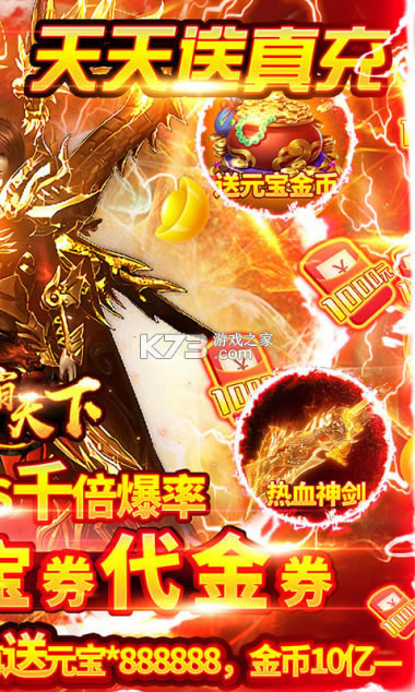 《权霸天下-天天送真充》开局送元宝*888888,金币*10亿,热血神剑,武器装扮-清凉一夏,新战区寻宝卷*100,神秘硬币*100!激爽体验1秒百级,开局激活三角色,超变态1000倍返利,开局千万身家,轻松碾压全场,全新珍宝阁超低折扣,无限福利每日无限领100元红包。每日签到双倍白嫖真充值卡!击杀无尽boss无限爆元宝卡,代金券,千人同屏攻沙,跨服自由PK,最激爽传奇,邀你来战!
