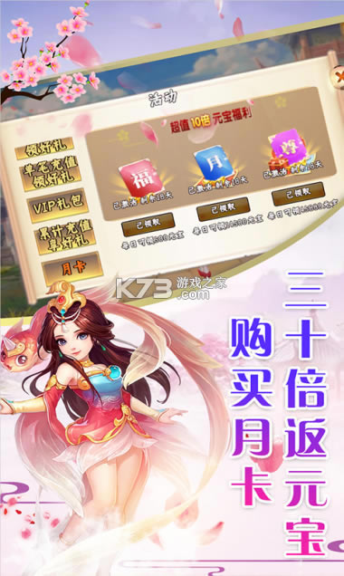 《仙灵剑-送2000充值》是一款奇幻武侠卡牌手游,各路著名英雄和大侠一起勇闯奇幻江湖!上线即送千元充值卡,每天签到也送充值卡,顶级VIP特权免费升满,还原江湖真实的战斗回合体验。开场福利满满,首充直接获得战神白起,女神语嫣,让你体验全新的不一样的江湖!
