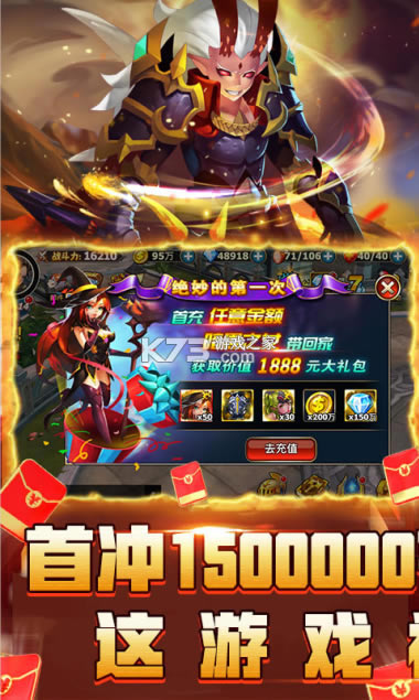 充值礼包:红色英雄礼包*30,7级变异石星包*2,高级幻兽晶石*5