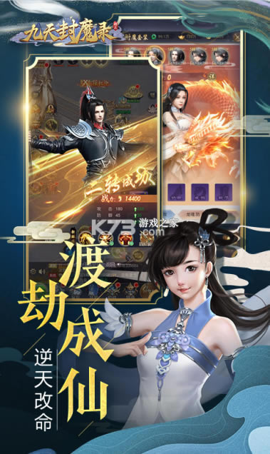 《九天封魔录》是一款以中国神话为背景的角色扮演类H5版手机端游戏。融入了更多风趣的元素,依据中国古代神话的人物设置以及打败妖怪所需的智谋和战略,带给玩家淋漓尽致的仙侠体验!游戏中,逍遥自在的唯美风景、幻化无形的华丽招数、畅快淋漓的震屏大招,不仅令玩家体验到有血有肉的修仙世界,而且特色飞行系统、即时乱斗、激情三界争霸,更是让玩家置身其中,开启一段属于自己的修仙之旅!