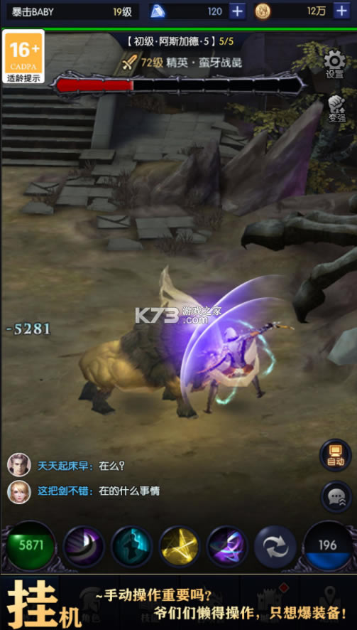 拿起来随时玩,放下及时挂机,在大家快节奏的生活中,我们不占用玩家太多时间。去除离线挂机时长限制,离线挂机百分百收益,每次上线之前都是满满得期待。但这并不代表游戏等于一键完成,我们更希望大家将心思花在辨识物品、搭配装备、技能组合上。