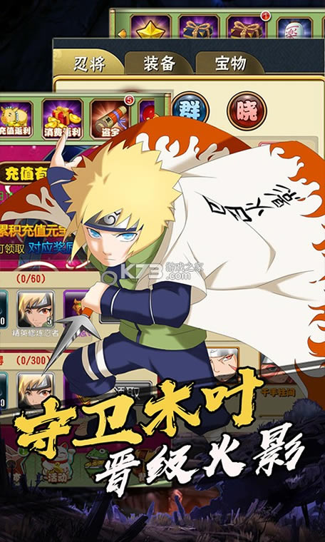 非常好玩有趣的角色扮演类手游,游戏以经典火影为背景主题所打造而成,玩家将要在游戏中学习和掌握各种不同的忍术来进行冒险,内容非常的丰富,各种精彩不断等你来玩!感兴趣的玩家快来下载体验吧!