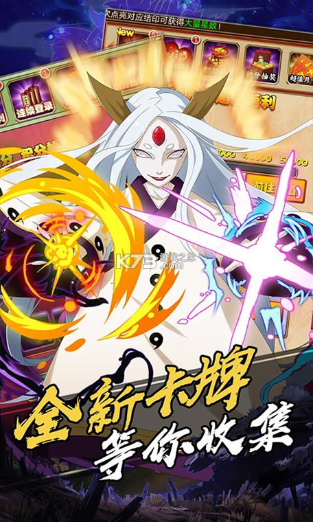 火影题材的卡牌类对战游戏,游戏包含了丰富多样的火影角色供玩家招募,强大的技能、丰富的武器、多变的敌人都等着你来逐一解锁,逐一挑战