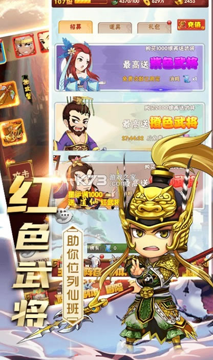 5.玩家可以根据不同需要对各个角色进行培养和排兵布阵,并将不同的武将与搭配运用到各类PVE、PVP玩法中。