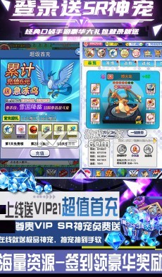 超级首充,最高三倍返利,送超级精灵梦幻等豪华大礼,充值比例1:1000