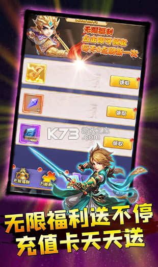三国题材的Rpg手游,非常经典的大汉三国历史战争题材的手游,极具策略性的战争对决呈现;海量不同类型的历史有名的武将任你搜集,随时随地开启你的指尖战争;不断的去搜罗不同的武将和全新冒险对决,让你享受最热血最震撼对决!