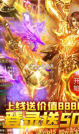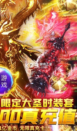 上线即送vip15、元宝88888、金币10000w,绝版情人节大圣限定时装套,无限福利每日壕领不停!创角直升百级,5000真充免费送!挂机打Boss,充值随地爆!
