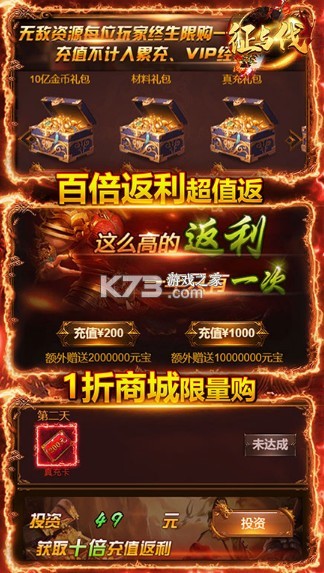 ★首冲最高10倍返利,超值投资百倍返,1折道具限量卖!
