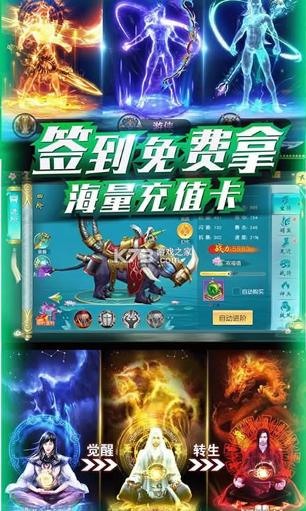 全民打金时代,跨服小怪狂掉充值卡;充值卡还可合成大额充值卡。突破传统玩法,打造全新福利手游!