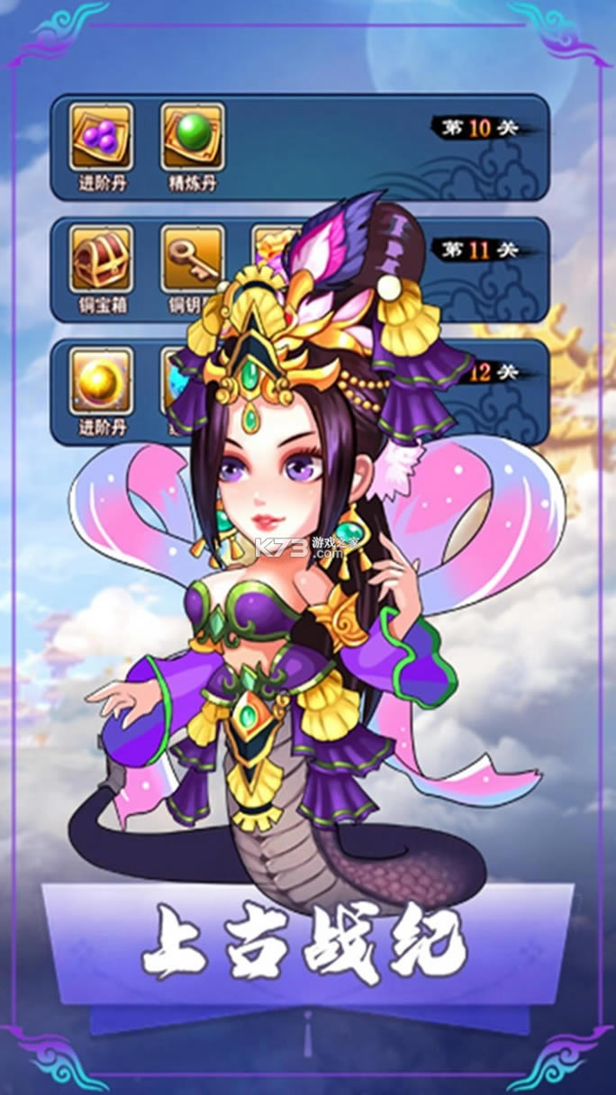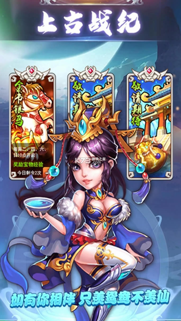 《上古战纪》精彩内容 《上古战纪》是一款拥有首创即时武技玩法的神话卡牌游戏 极致华丽的战斗动作表现,融入精心打造的天术技能系统,实现天术技、天赋技多样化技能组合。丰富的武将设定,通过武将升级、突破等玩法,获得更多的华丽技能、特殊属性,体验丰富阵容组合带来操作享受。 挑战性质的追星赶月玩法,为玩家提供竞争和展现实力的平台。