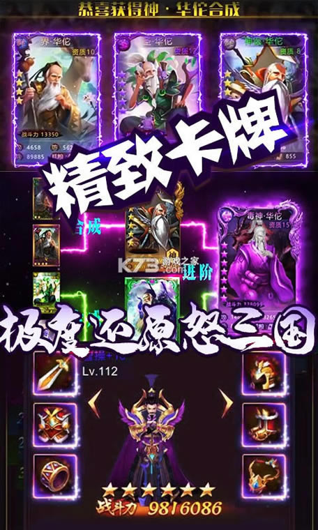 神将来袭,三国人物列传,过关斩将,全民Boss,历代名将,跨服争霸,名将寻访等活动更让你体验到不一样的新鲜玩法,带你走入三国巅峰!