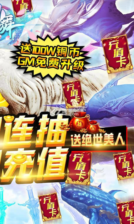 2.上线送百万绑元,100W铜币,GM免费升级,超多GM专属强力BUFF等你来体验,各种超强免费福利等你来!次日登录再送千万绑元!连续还能免费升GM!真正的福利手游!