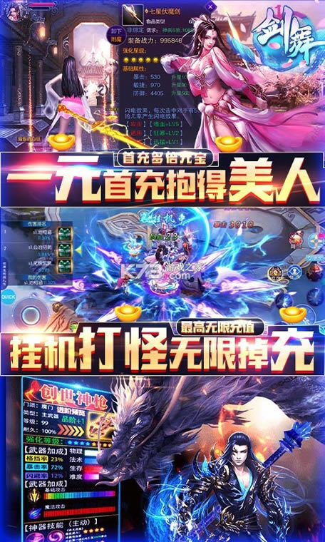 1.充值比例1:10000!!所有档位首次购买更是能获得多倍元宝!最高到达10倍!上线即可获得GM特权,商城购买无限连抽和无限资源!挂机打怪还能无限掉充值!