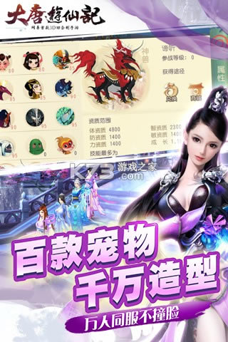 《大唐游仙记》拥有电影级3D画面,精致的人设,丰富的场景,全景视角,带来身临其境之感!经典回合,海量趣味玩法,轻松无负担;六大个性门派,全新技能体系,战斗更具新意!捏脸换装系统,DIY个性造型,实现万人同服不撞脸,更有真人社区,轻松交友,随时随地偶遇奇缘!