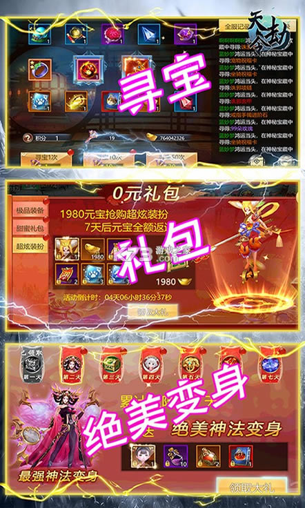 这里有热血夺城战和跨服攻城玩法,而且游戏福利多多,上线即送无限充值卡,不不用氪金也能玩转三界。