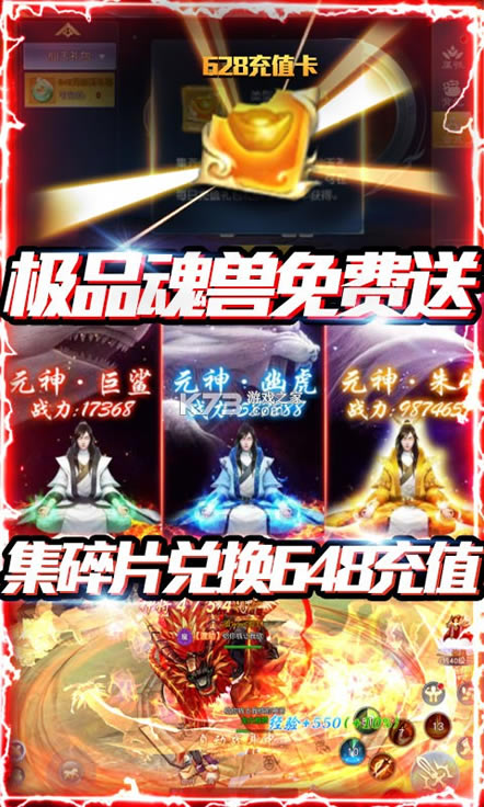 4.登录免费送全套魂兽,战力暴涨得非常离谱!!!还有各种神装、神器、绝版外观和海量元宝,不想氪金?小肝也可爽飞天,就是这么福利!!!
