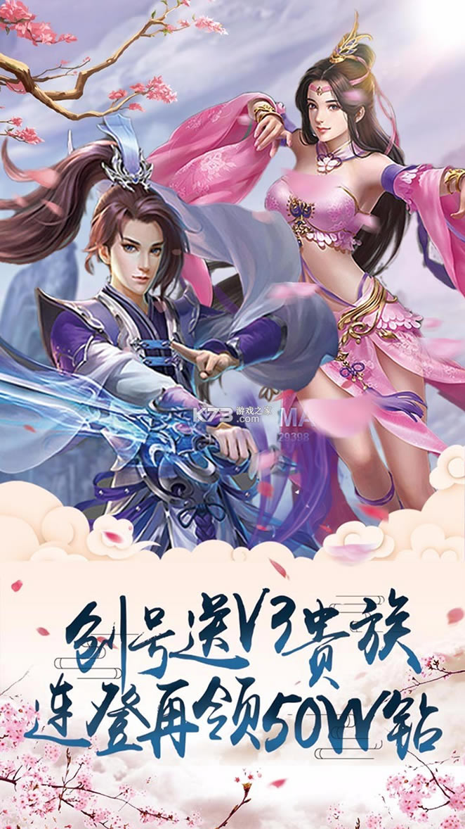 四大角色创号就送V3和领50W元宝。