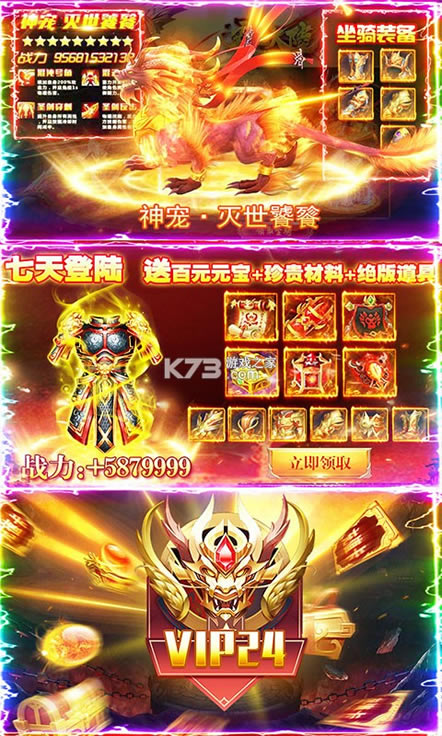 ★开局就送:满级V24,100000元宝,银两1000万!所有vip礼包全部免费白嫖!