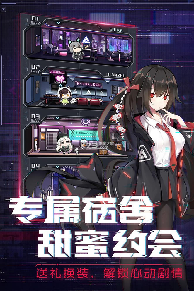礼物赠送,好感提升,唤醒冰冷躯壳下那炽热的灵魂,邂逅末世爱恋。花样时装,一秒切换。Live2D科技,点击莹幕即可展开亲密互动!