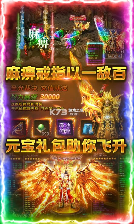 1、充值比例1:1000!上线即送VIP20! 元宝36000!以及8888888金币!福利转盘!超多奖励拿不完!