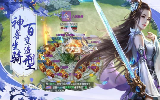 2.高阶坐骑激活回血技能,抗BOSS更轻松!翅膀、法宝、神兵、时装等丰富的成长途径;