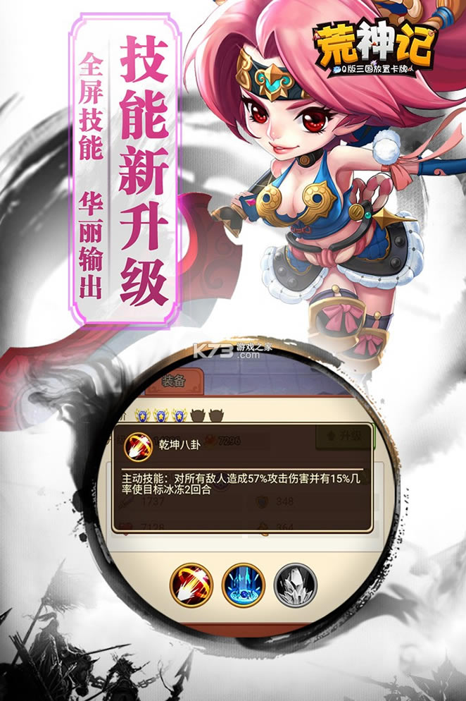深度的养成系统、层层升级的关卡挑战、丰富的游戏奖励,让轻松的放置卡牌手游《荒神记》以丰富的游戏内容让玩家在有限的时间内体会到满足的乐趣,真正做到轻松又不失乐趣,简约又不简单,轻松愉悦地开启三国争霸之路!