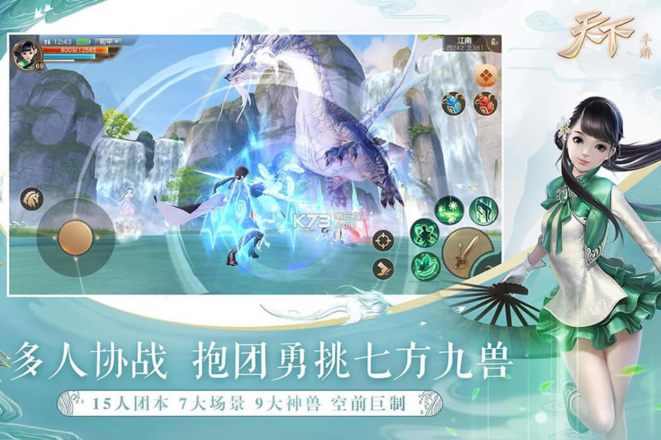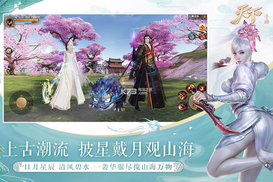 3、大世界——八千里路云和月 手握万顷大荒无缝世界。《天下》突破传统手游地图限制,带来真正的掌中大世界。超宏大地图,由社交到战斗,由任务到组队无缝衔接,告别读取进度条。不同场景氛围独特,区域间自然过渡,大荒美景任你遨游。