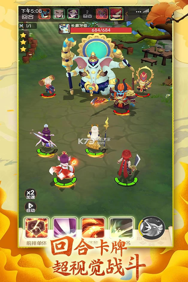 主角成功释放4次技能后可激活神兽技能,可随时点击召唤出四大神兽中的其中之一,对场上敌方伙伴造成大量的伤害。