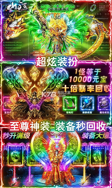 5、首充赠送海量神装道具,更有回收装备获取元宝特权!