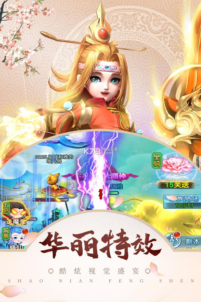 奇幻萌系Q版修仙手游!超绚丽的技能,靓丽的时装,精致逗趣的神兵,配合各具特色的仙友和萌宠,怒气释放及灵活自由的战斗策略,让玩家在战斗中创造出无限可能!以少年之名,为玩家打造了一个Q萌畅爽、快意恩仇的梦幻仙境