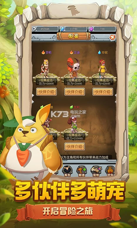 探索的过程中,玩家可以招募各种强力乖萌的宠物和伙伴,一起踏上未知而精彩的冒险旅程。生机勃勃又蕴含着危险,将给玩家带来前所未有的奇幻体验。