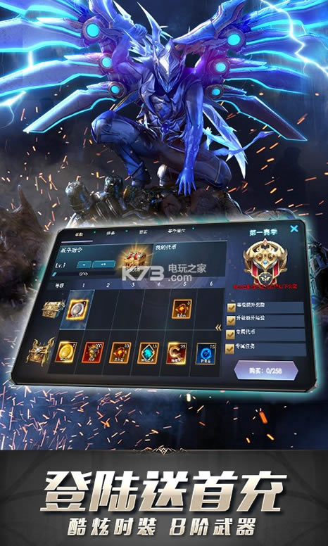 2、登陆就送超值首充,内涵高阶羽翼:狂暴之翼、八阶武器,黑禽夜啼武器时装30天*1,今朝宿命时装30天*1